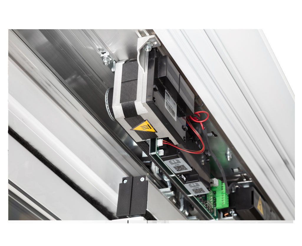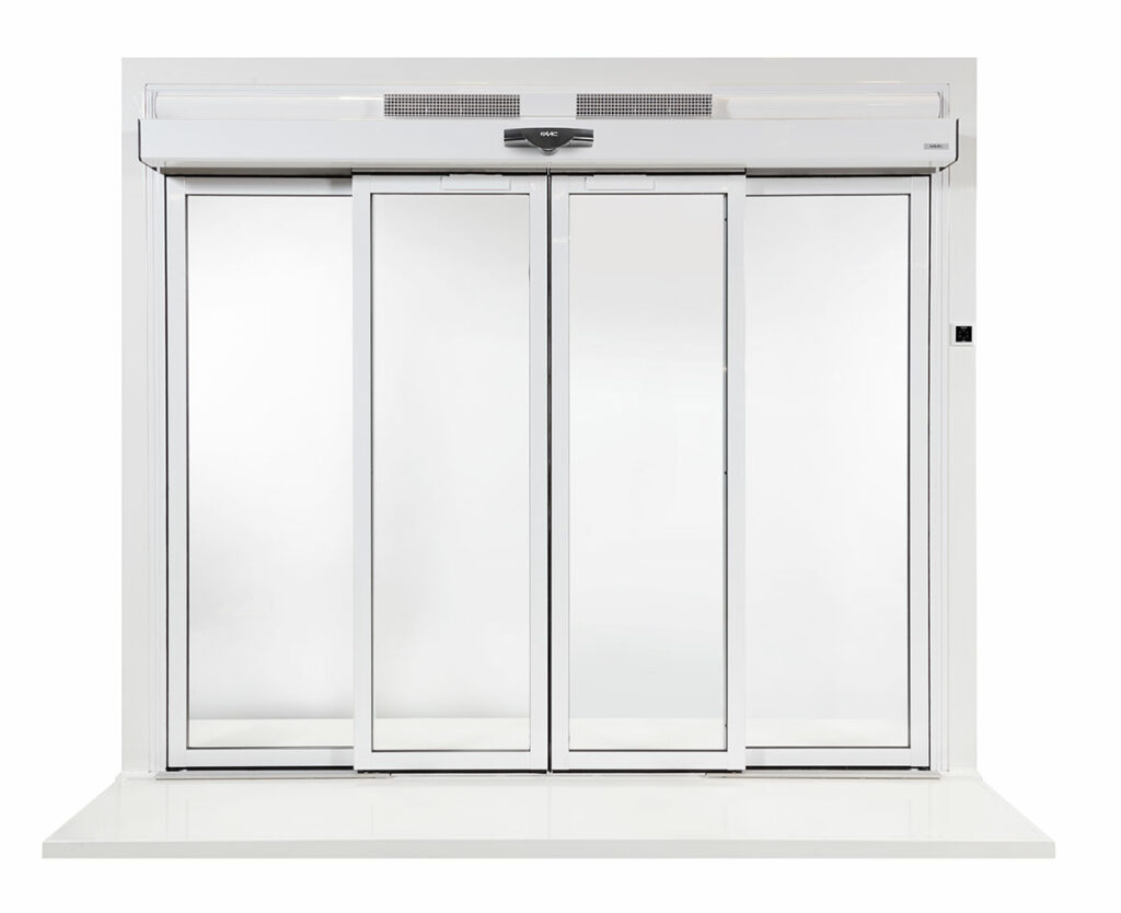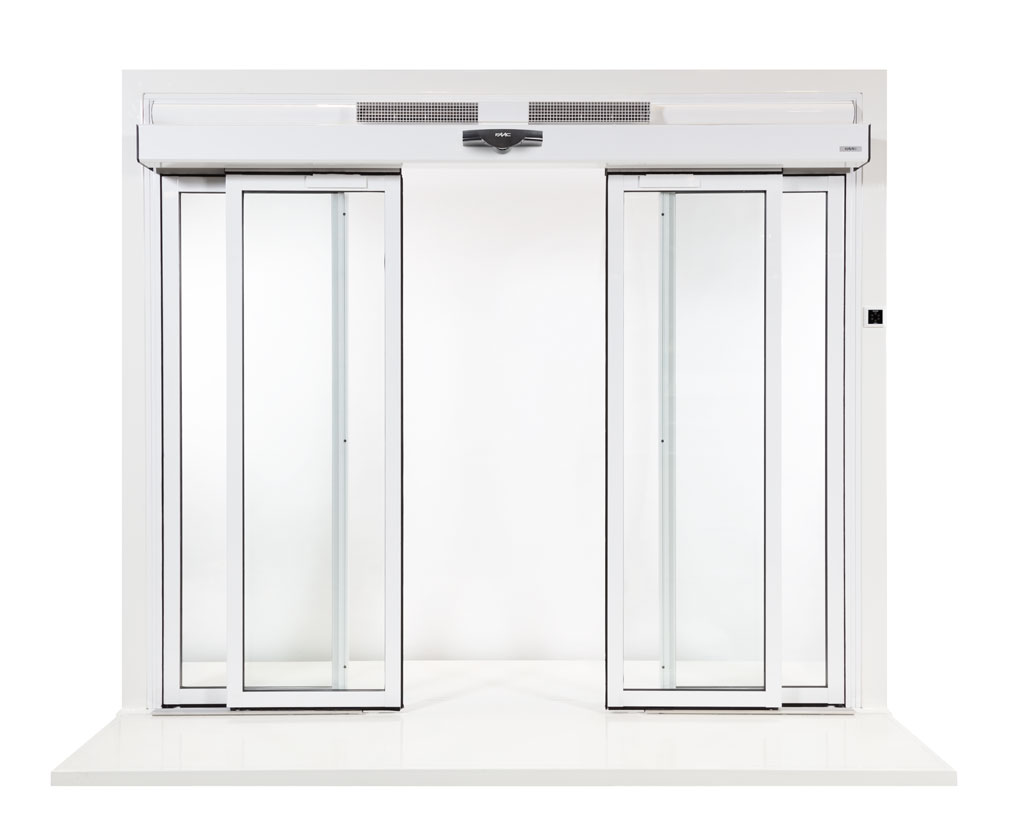 Este sistema integra una puerta corredera automática con una cortina de aire incorporada, combinando un diseño elegante con eficiencia energética. Reduce la dispersión de energía, mejora la calidad del aire al limitar los contaminantes externos y garantiza un confort óptimo al minimizar las corrientes de aire.